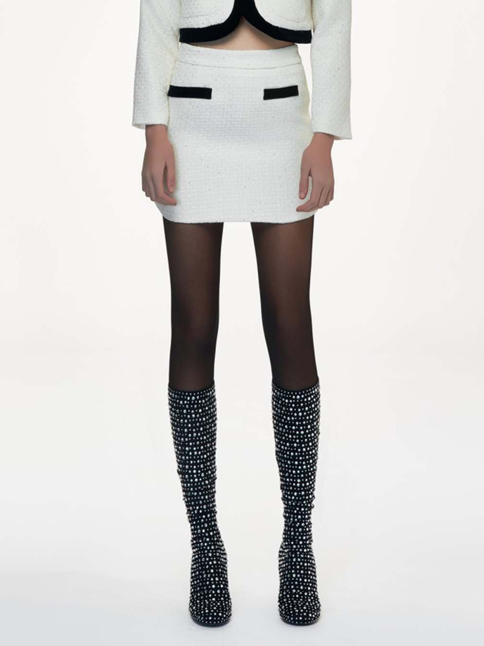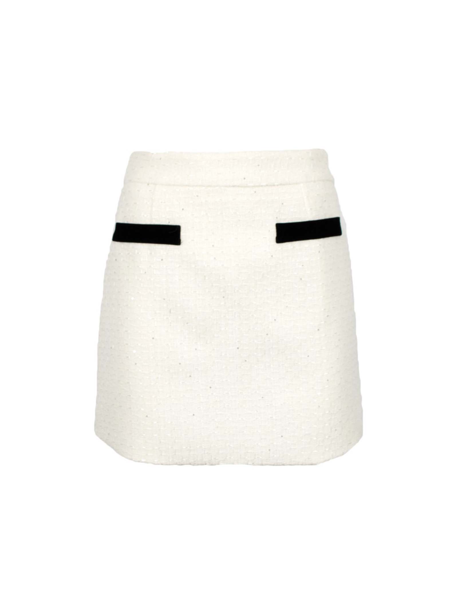 Gonna odi odi mini a trapezio a vita alta. Profilo orizzontale in velluto nero a contrasto.